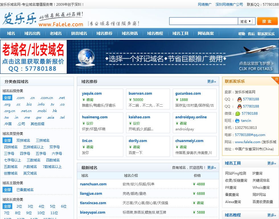 发乐乐域名网是业内权威的域名交易投资网站,提供域名出售转让、老域名购买报价、过期已备案域名查询预订抢注注册、二手域名买卖价格等域名资讯信息.发乐乐域名网,米农及终端必上的域名增值服务平台!