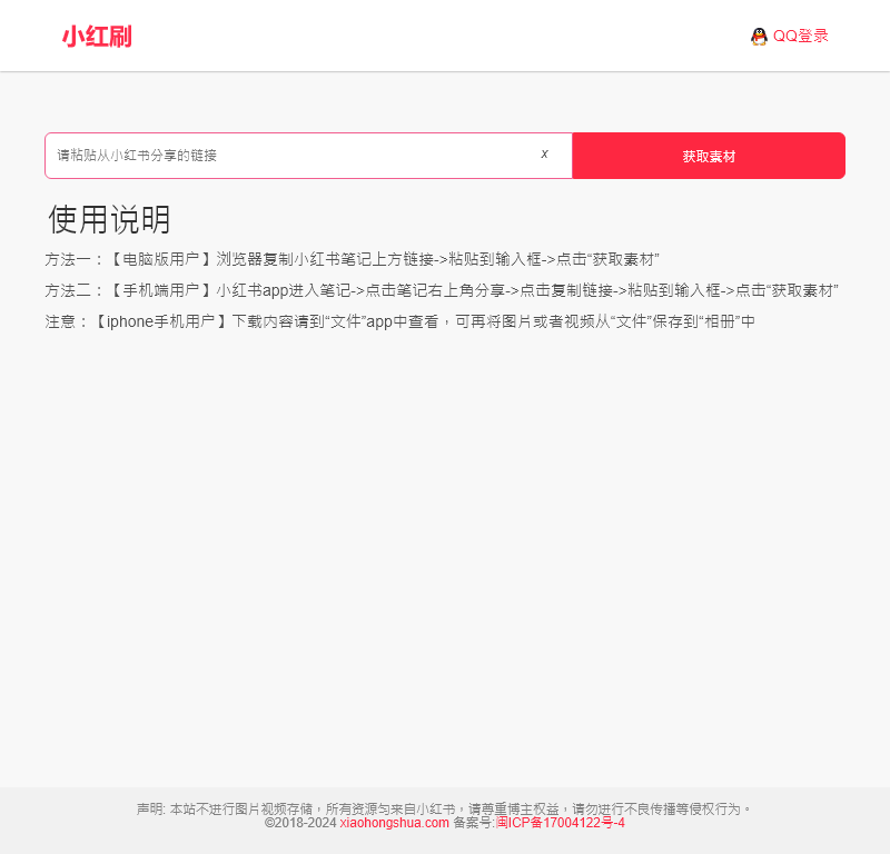 小红刷是一款好用的小红书图片视频去水印工具,可以根据小红书分享链接下载无水印图片及视频,看到好看的图片或者视频不知道怎么下载怎么办?小红刷帮你解决!