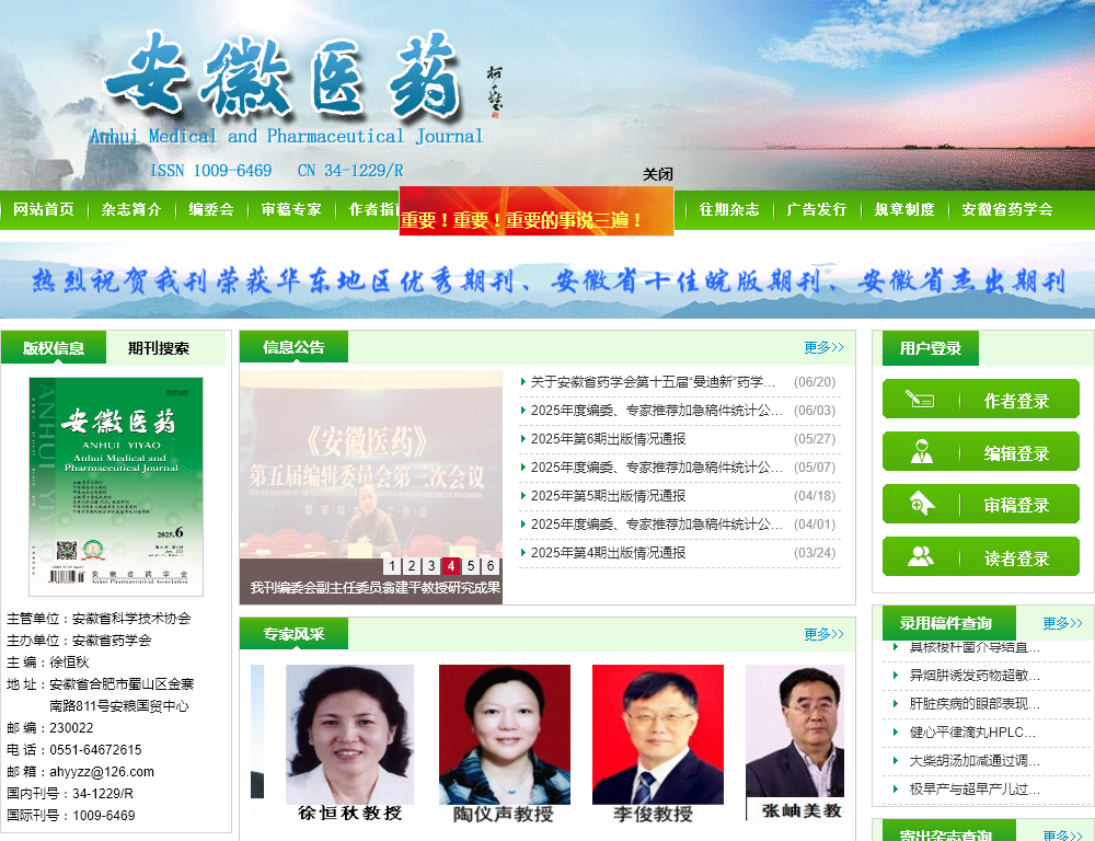 安徽医药 安徽医药杂志 安徽医药投稿 安徽医药编辑部 安徽医药杂志官方唯一在线投稿平台